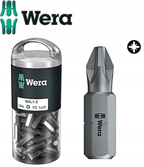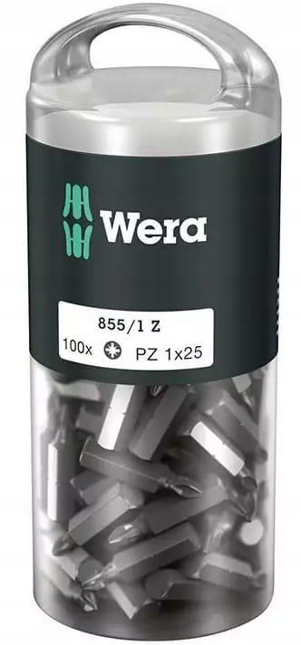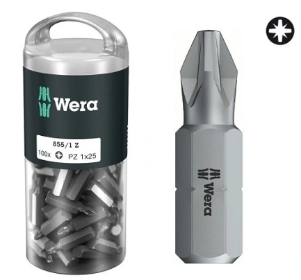 Bit 1/4" PZ1 x 25mm 100szt. krzyżowy POZIDRIV 855/1 Z STANDARD do zastosowań uniwersalnych 072443 Wera