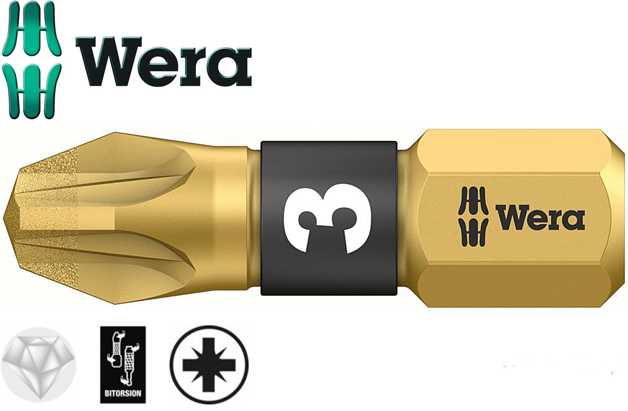 EAN 4013288034021 Bit 1/4" PZ3x25mm krzyżowy POZIDRIV "855/1 BDC" diamentowa końcówka 05056704001 056704 Wera