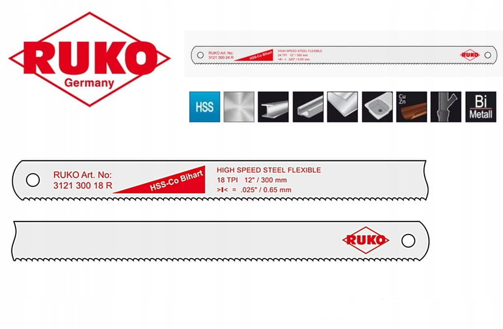 EAN 4007140039415 Brzeszczot kobaltowy 300x13x0,65 /18 HSS-Co Bihard kobalt 312130018R Ruko