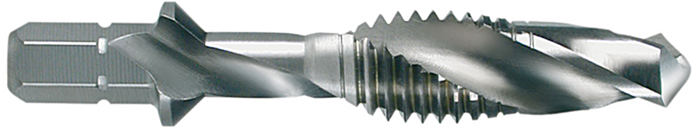 Gwintownik maszynowy HSS - kombi z chwytem 1/4" jest idealnym narzędziem do obróbki blach za pomocą wiertarek akumulatorowych lewo i prowobieżnych. gwint wykonywany jest w jednej operacji technologicznej bez potrzeby zmiany narzędzia. Wiertło kręte wykonuje wstępnie otwór pod gwint.
