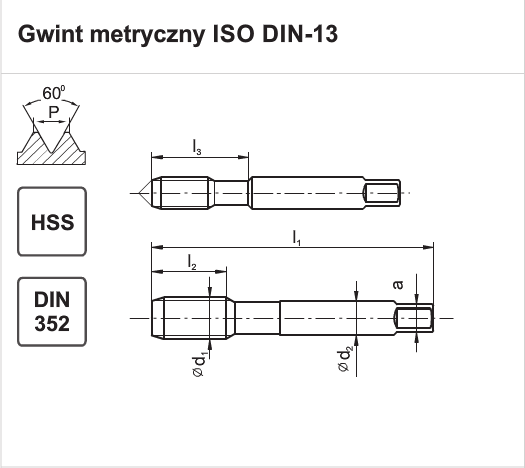 Zestaw gwintowników ręcznych zwykłych wykonanych zgodnie z normą ISO-529 z gwintem metrycznym charakteryzujących się uniwersalnym zastosowaniem - przeznaczonych do otworów przelotowych i nieprzelotowych.