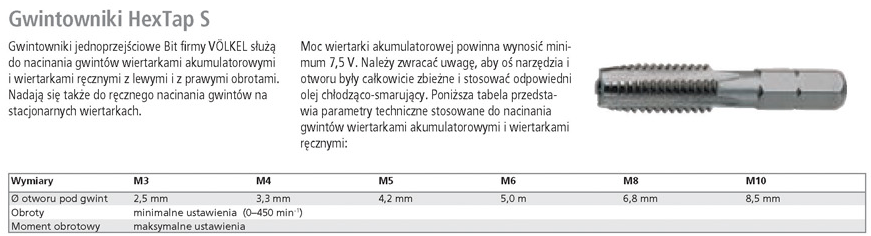 Gwintowniki jednoprzejściowe Bit firmy VOLKEL służą do nacinania gwintów wiertarkami akumulatorowymi i wiertarkami ręcznymi z lewymi i prawymi obrotami.