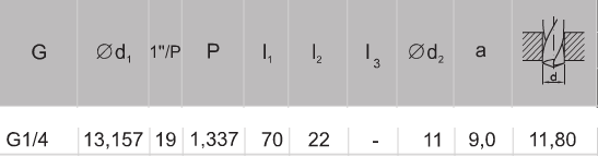 - średnica znamionowa gwintu: G 1/4" (13,157mm)