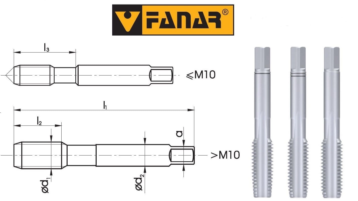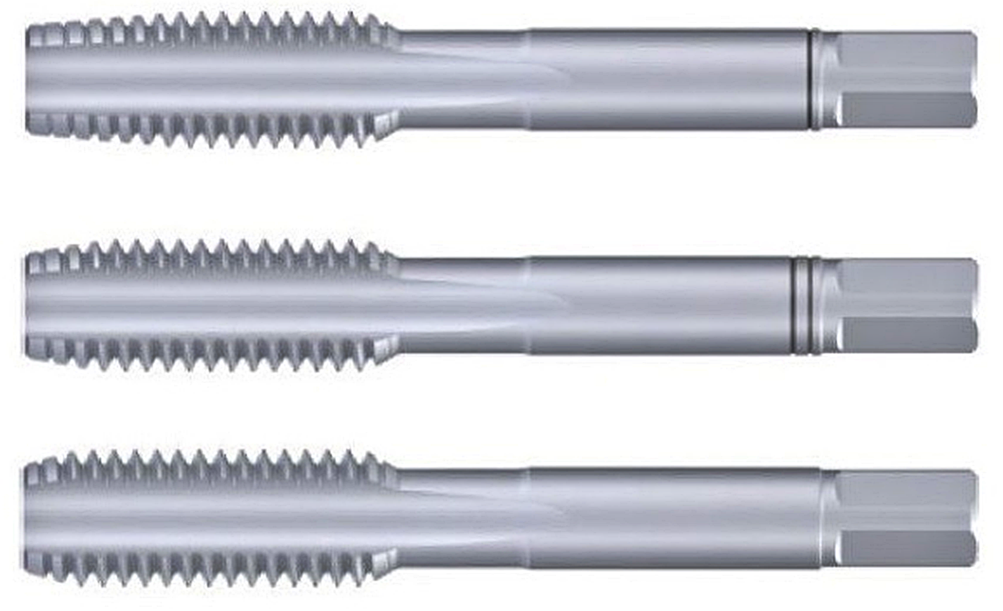 Komplet trzysztukowy zawiera gwintownik zdzierak, gwintownik pośredni i gwintownik wykańczak.