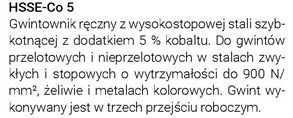 - Rodzaj materiału: HSSE-Co5