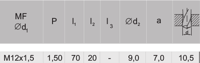 - średnica znamionowa gwintu: M12x1,5