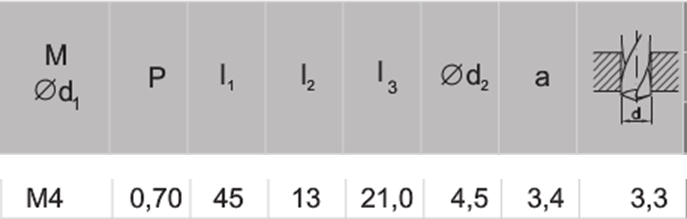 - średnica znamionowa gwintu: M4