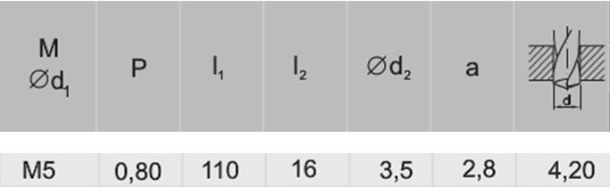 - Średnica znamionowa gwintu: M5