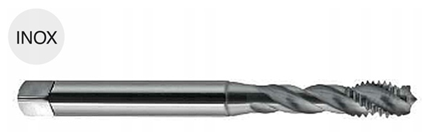 - Gwintownik maszynowy do stali nierdzewnej 1-sztukowy (pojedyńczy) z rowkami wiórowymi śrubowymi prawymi służący do wykonywania gwintów metrycznych zgodnie z normą ISO DIN-13.