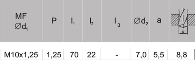 - Gwint d1: M10x1,25