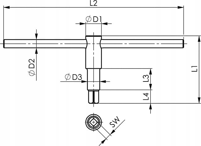 Klucz 4-kątny 6mm (do - zewnętrzne gniazdo czworokątne) - do uchwytów tokarskich