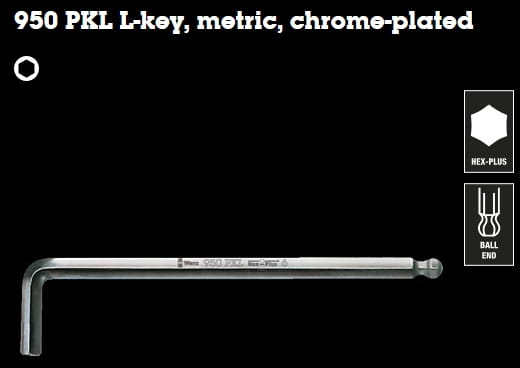 Klucz imbusowy 2,0mm 100x16mm chromowany 950PKL Hex-Plus sześciokątny długi z kulką