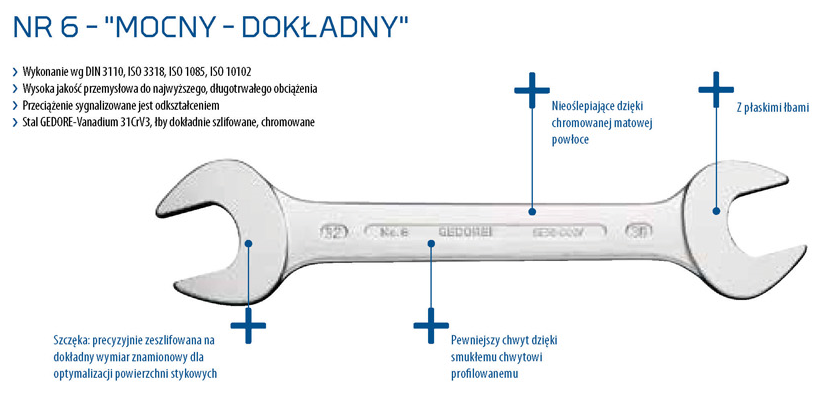 - Stal GEDORE-Vanadium 31CrV3, łby dokładnie szlifowane, chromowane