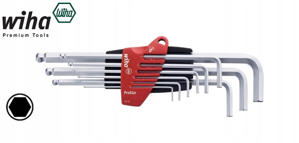 Klucze imbusowe firmy WIHA w komplecie - w uchwycie z tworzywa sztucznego "ProStar" z praktyczną funkcją wysuwania.