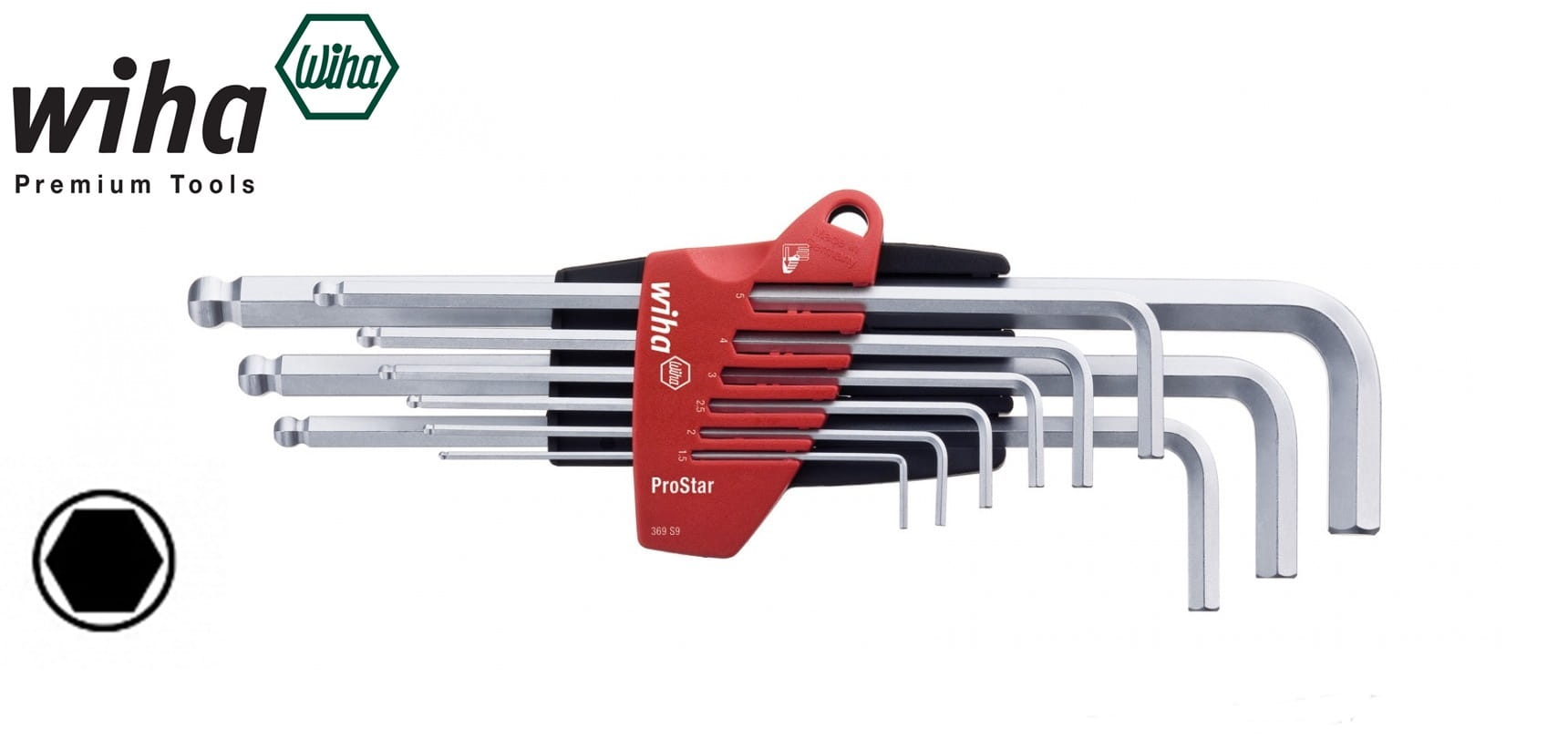 Klucze imbusowe 1,5-10mm 369 S9 długie chromowane z końcówką kulistą w uchwycie ProStar komplet