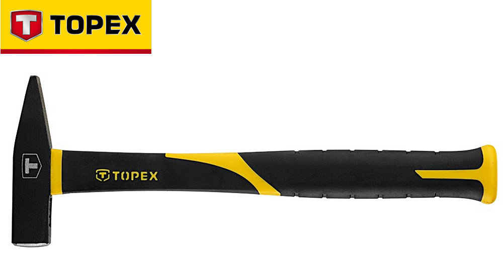 Młotek ślusarski TOPEX (nr ref. 02A833) o masie 300 g, przeznaczony do drobnych prac montażowych i budowlanych.
