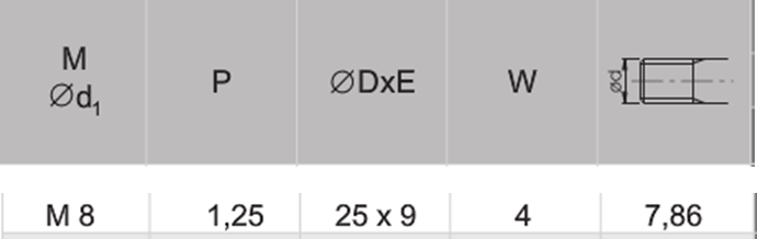 - Średnica zewnętrzna (d2) x grubość narzynki (h1): 25 x 9 mm