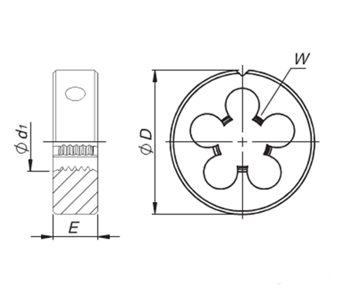 Narzynka HSS z lewym gwintem (LH) służy do precyzyjnego nacinania zewnętrznych gwintów lewoskrętnych na wałkach, prętach i śrubach.