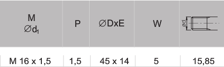 - Średnica nominalna gwintu: M16x1,5