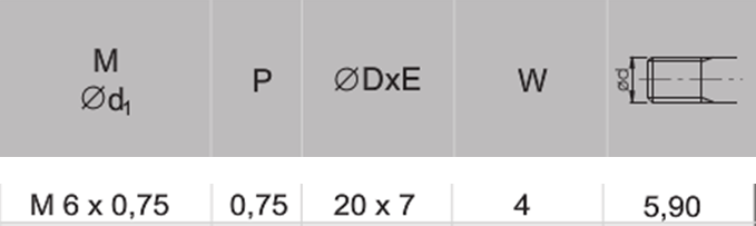 - Średnica nominalna gwintu: M6x0,75