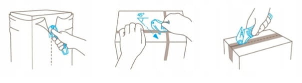 W przypadku noża do rycowania taśmy klejącej mają Państwo wybór głębokości rycowania wynoszącej 5 i 3,5 mm ‒ jeszcze lepsza ochrona towaru. W tym celu należy otworzyć rękojeść, odwrócić nóż do rycowania, gotowe. Podobnie nieskomplikowana jest praca z nim. Wkłuć w taśmę klejącą i zaczynamy.