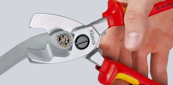 - nożyce do kabli Knipex z podwójnym ostrzem to narzędzie do instalacji elektrycznej