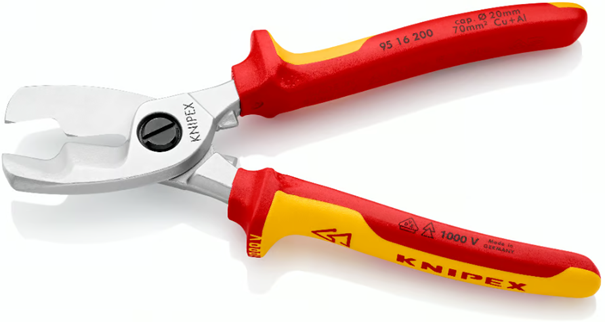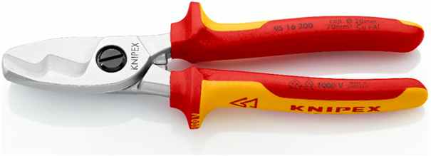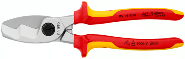 Nożyce do kabli i przewodów 200mm 95 16 200 do kabli 20mm 1000V rękojeść wielokomponentowa 9516200 Knipex