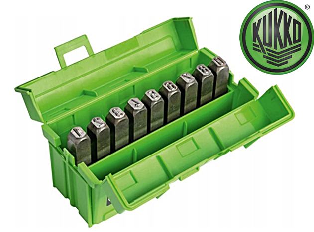 Zestaw znaczników cyfrowych , niezwykle wytrzymałych, niklowanych z połyskiem, 9-częściowy niemieckiego producenta firmy KUKKO.