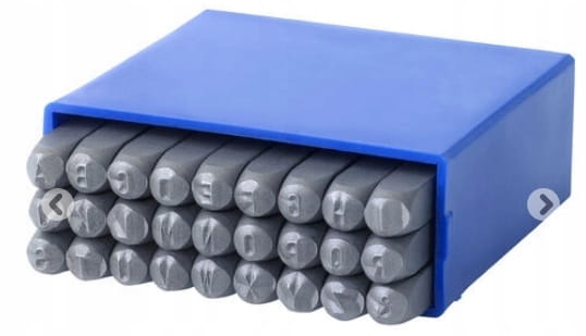 - zestaw profesjonalnych znaczników (numeratorów) firmy Gravurem do znakowania cyfr na elementach wykonanych z metalu
