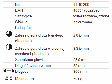 - Zakres cięcia drutu twardego (średnica): 2,0 Ø mm