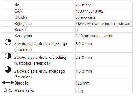 Obcinaczki boczne 125mm 70 01 125 rękojeść powlekana z tworzywa sztucznego 7001125