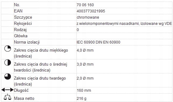 - Jeden z najpopularniejszych modeli szczypiec do uniwersalnego zastosowania