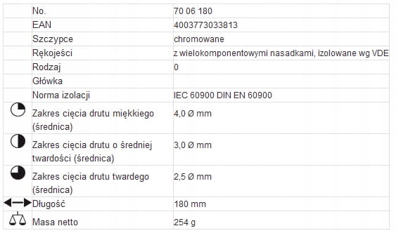 EAN 4003773033813 Obcinaczki boczne 180mm 70 06 180 1000V rękojeść dwukomponentowa 7006180 Knipex