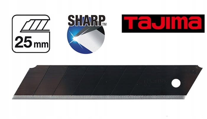 profesjonalne ostrza segmentowe czarne łamane 25 mm firmy Tajima do różnych modeli noży