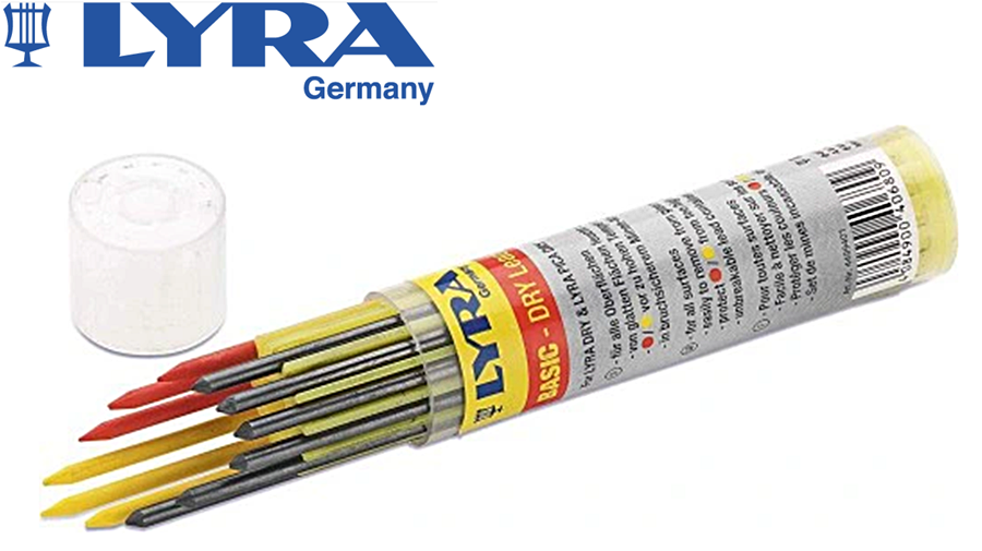 Wkłady do ołówka automatycznego Lyra Dry, przeznaczone do używania na większości powierzchni, zarówno suchych jak i wilgotnych.