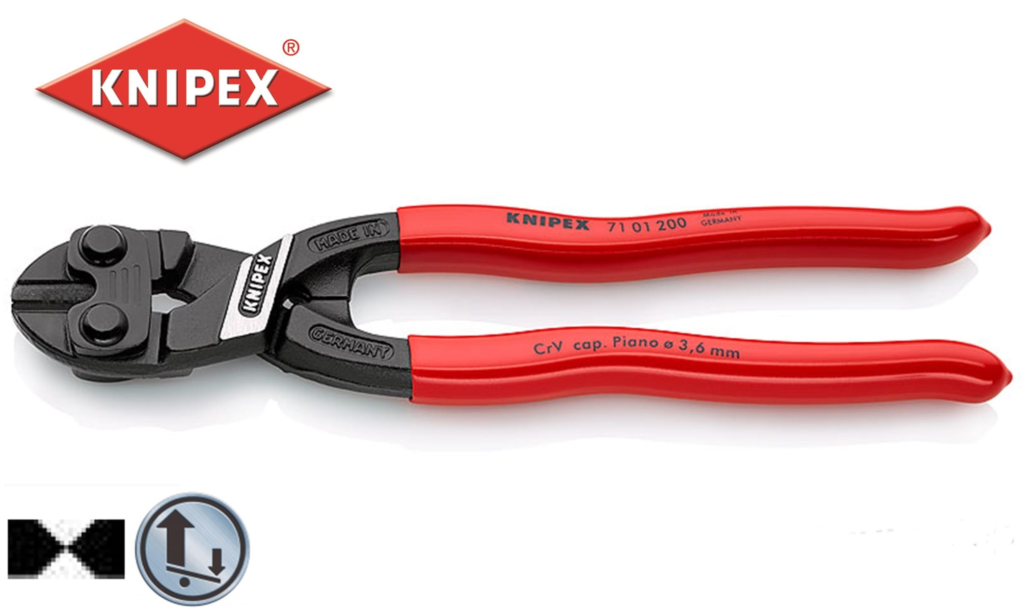 EAN 4003773033165 Szczypce 71 01 200 tnące CoBolt 200mm drut fort. - 3,6mm, twardy 4,0mm; stalowy - 5,2mm 7101200 Knipex