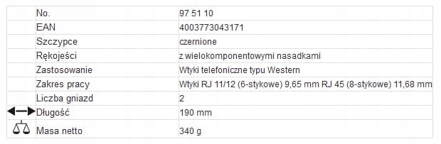 EAN 4003773043171 Szczypce 97 51 10 do zagniatania wtyków telefonicznych typu Western RJ11/12,RJ45 975110 Knipex