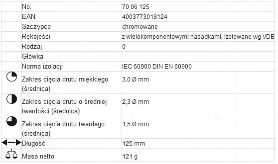 EAN 4003773018124 Szczypce boczne 125mm 1000V 70 06 125 obcinaczki boczne 7006125 Knipex