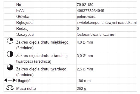 - Zakres cięcia drutu twardego (średnica): 2,5 mm