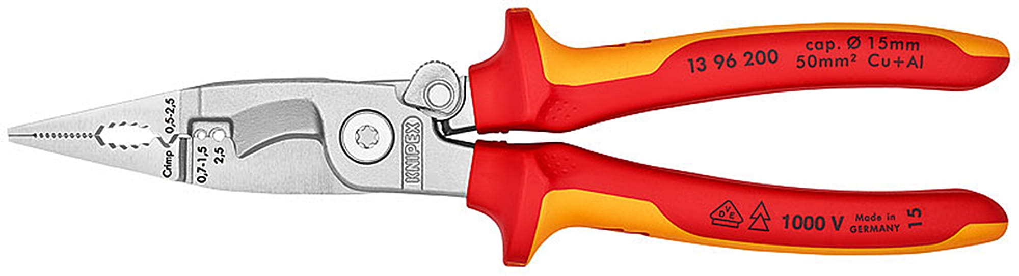 EAN 4003773075110 Szczypce do prac elektroinstalacyjnych 200mm 13 96 200 1000V rękojeść dwukomponentowa 1396200 Knipex