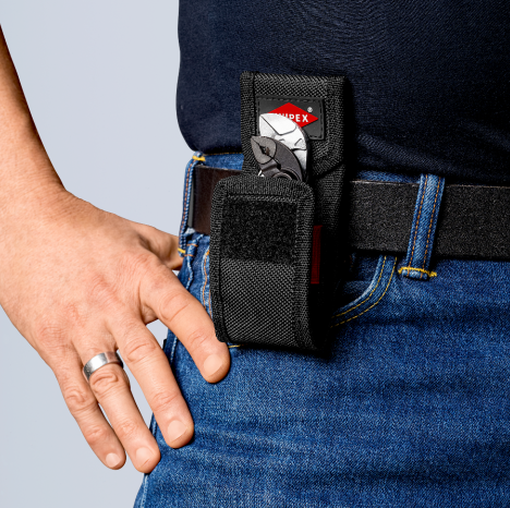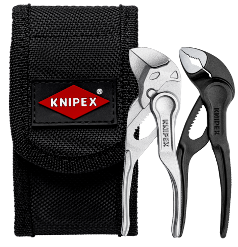 - Zawsze pod ręką, zawsze pomocne: szczypce-klucz XS i KNIPEX Cobra® XS w praktycznym etui do zawieszenia na pasku