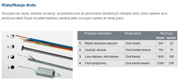 - Precyzyjne ostrza do cięcia drutu miękkiego i twardego oraz drutu fortepianowego