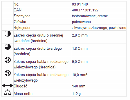 Szczypce uniwersalne kombinerki 140mm 03 01 140 rękojeść powlekana z tworzywa sztucznego 0301140-Z Knipex