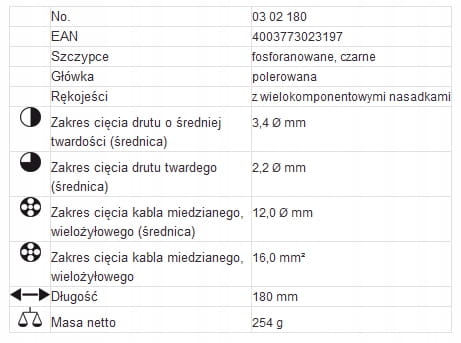 - Długie ostrza umożliwiają cięcie grubych przewodów