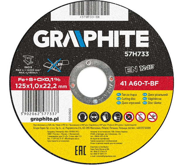 Tarcza do cięcia metalu 125 x1mm do stali kwasoodpornej INOX 57H733-Z Graphite