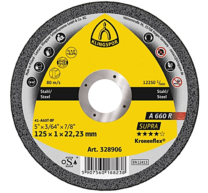 EAN 5907560188245 Tarcza do cięcia stali nierdzewnej 125x1,0x22,2 INOX A660R T41 328906 Klingspor