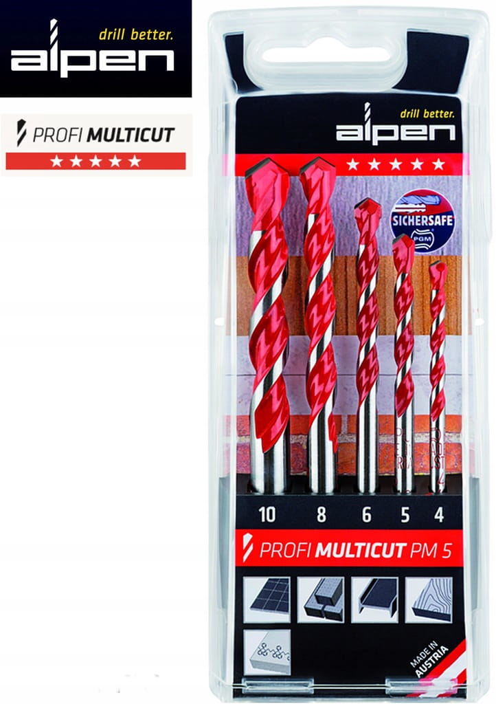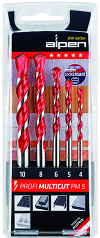 EAN 9002741011346 Wiertła wielozadaniowe uniwersalne 4-10mm 5szt. PROFI MULTICUT 4,5,6,8,10mm 0000100705100 001007051 Alpen