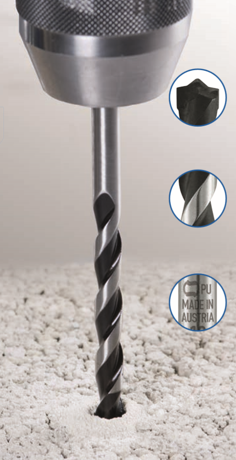 - wysokowydajne wiertła PROFI BETON do wiercenia udarowego w betonie, murze i kamieniu naturalnym oraz wiercenia bezudarowego w ceramice i marmurze,