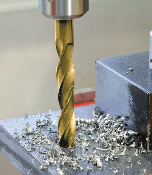 Wiertło kręte ze stali szybkotnącej z pokryciem TiN.