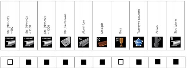 - Wiertło HSSE z dodatkiem stopu kobaltu,
